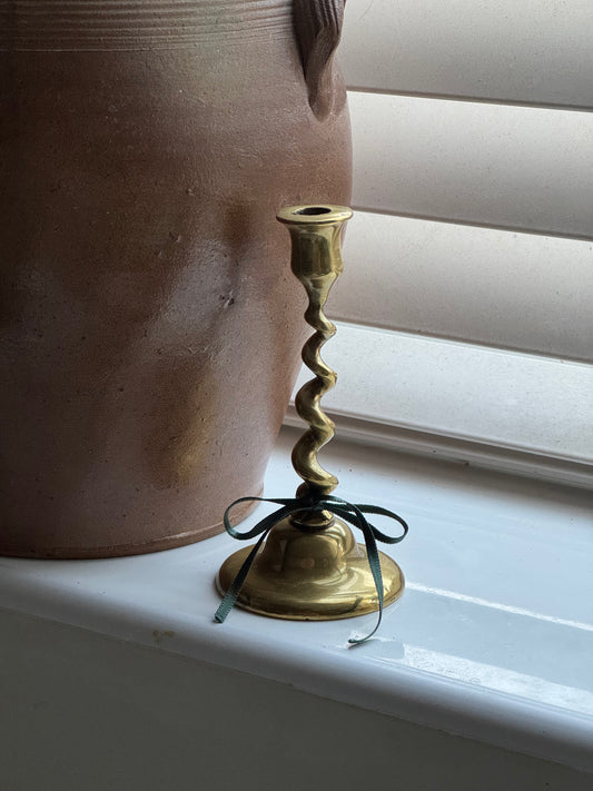 Small Vintage Brass-Gold Corkscrew Candle Holder