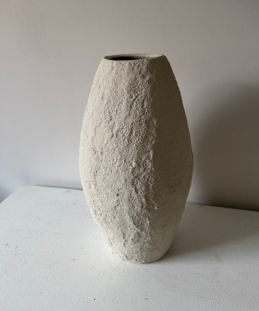 Up-cycled | textured off-white/light beige large tapered vase
