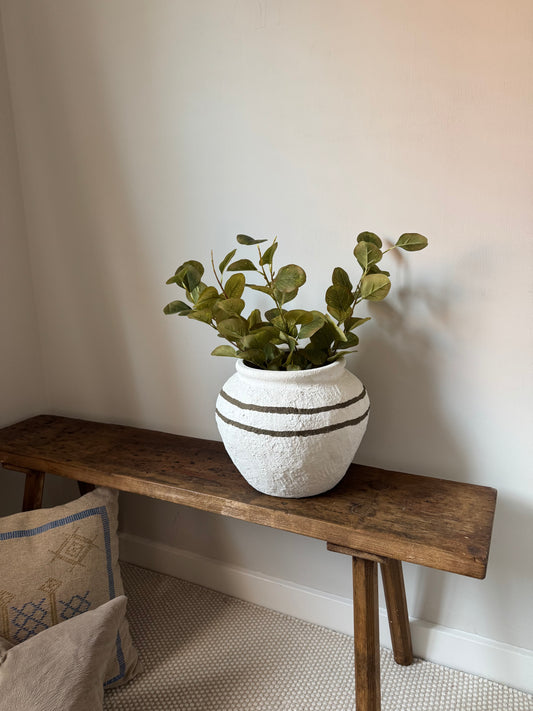 Up-cycled | large round textured line detail white urn