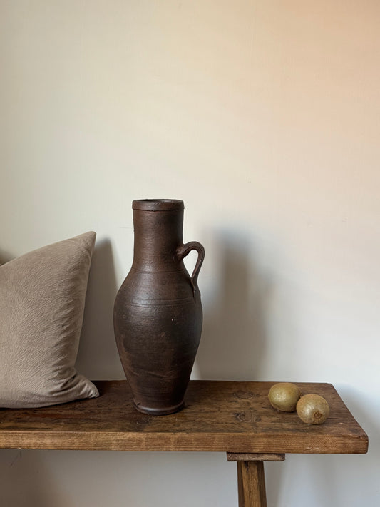 Up-cycled | large dark earthy brown tall handled vase