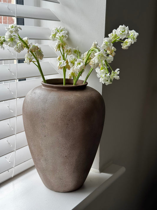 Up-cycled | Large warm brown, rustic textured vase