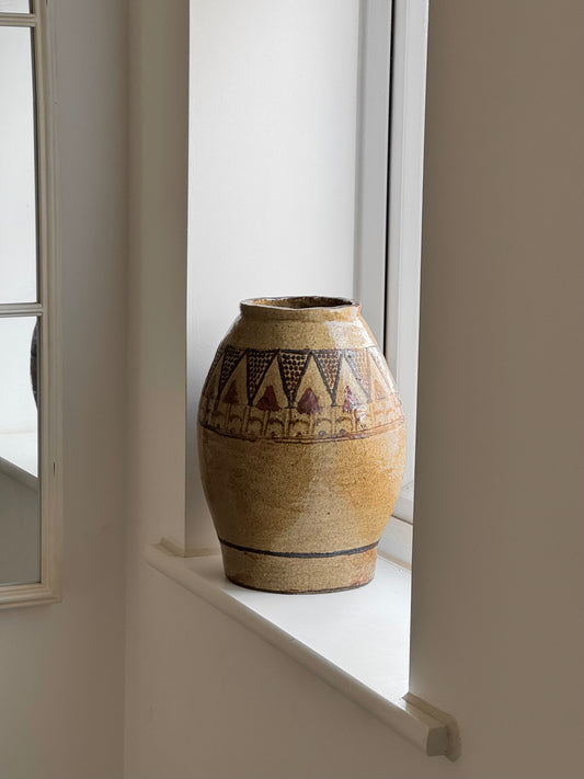 Antique Geometric Large Glazed Stoneware Pot
