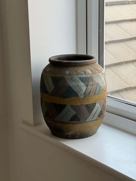 Large Vintage Geometric Rounded Pot