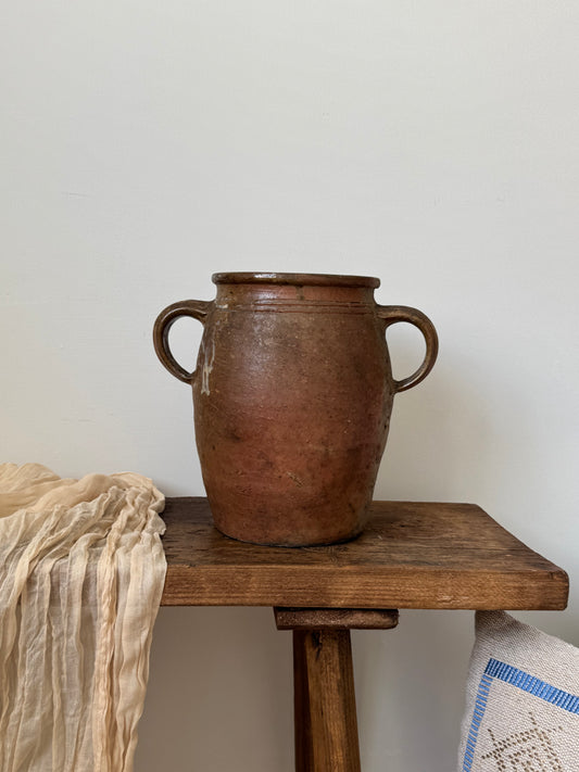 Vintage French Earthenware Twin Loop Handled Pot