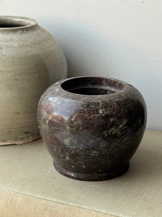 Small Deep Brown Solid Marble Pot/Candle Holder