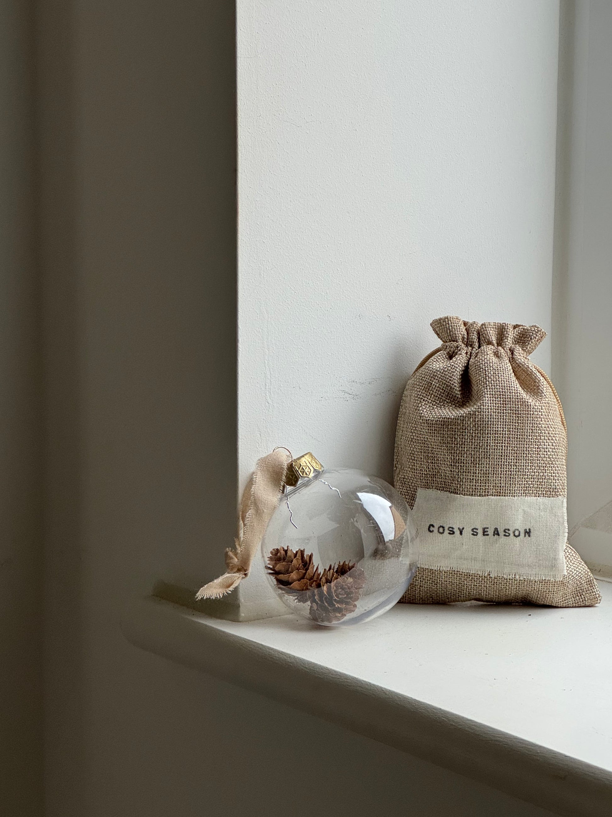 Embrace the beauty of the Winter months with our 'Cosy Season' Pinecone Pouch. Each hessian pouch is filled with a bundle of mini natural pinecones, perfect for Autumn-Winter displays. Pour into a rustic bowl, scatter along a mantel, or tuck a few in to a wreath or shelf styling for understated, natural charm. Hand-filled and thoughtfully packaged in a drawstring bag stamped COSY SEASON, a perfect pouch to re-use. The pinecone pouch makes a lovely gift or a seasonal touch for your space.