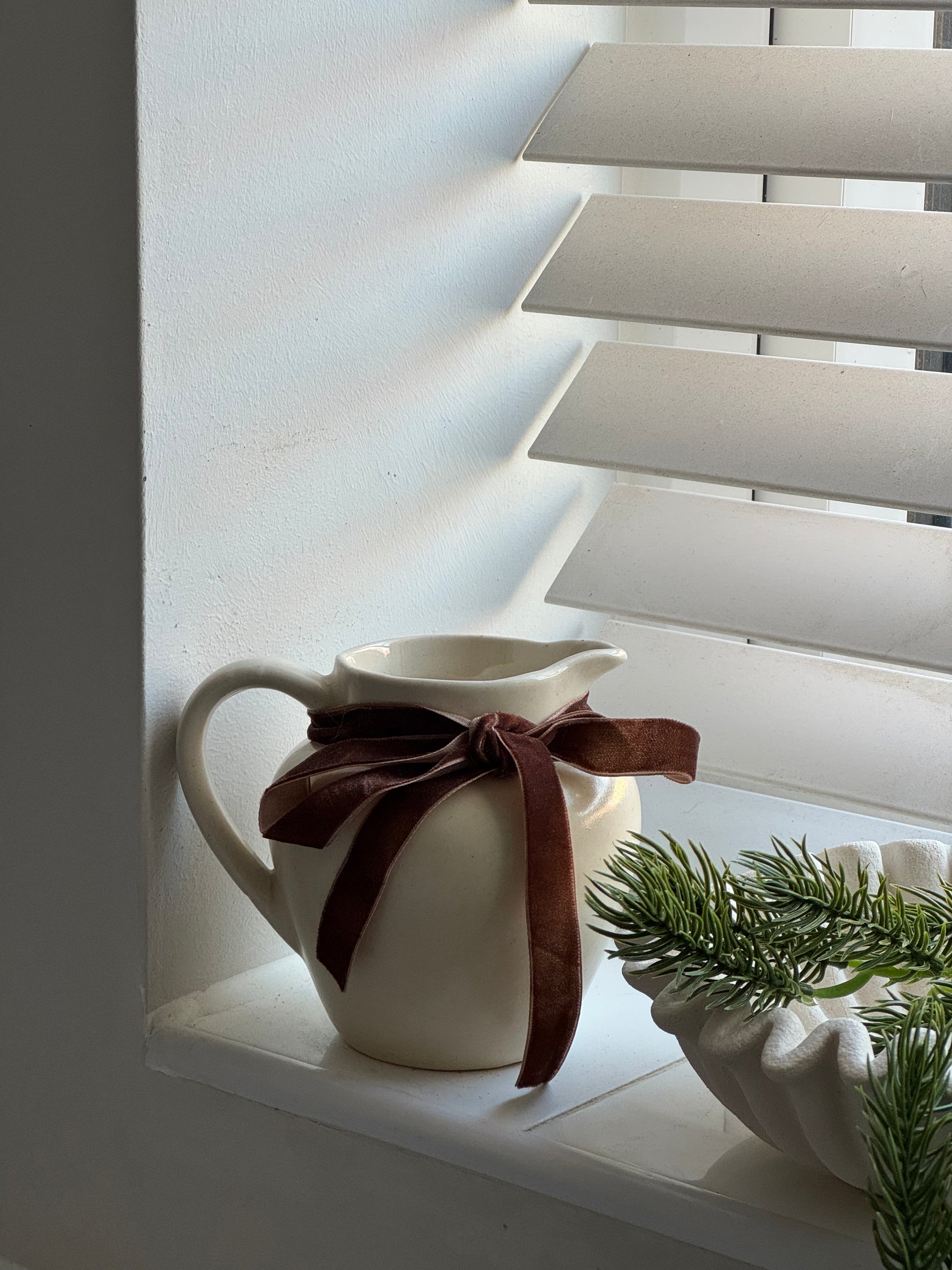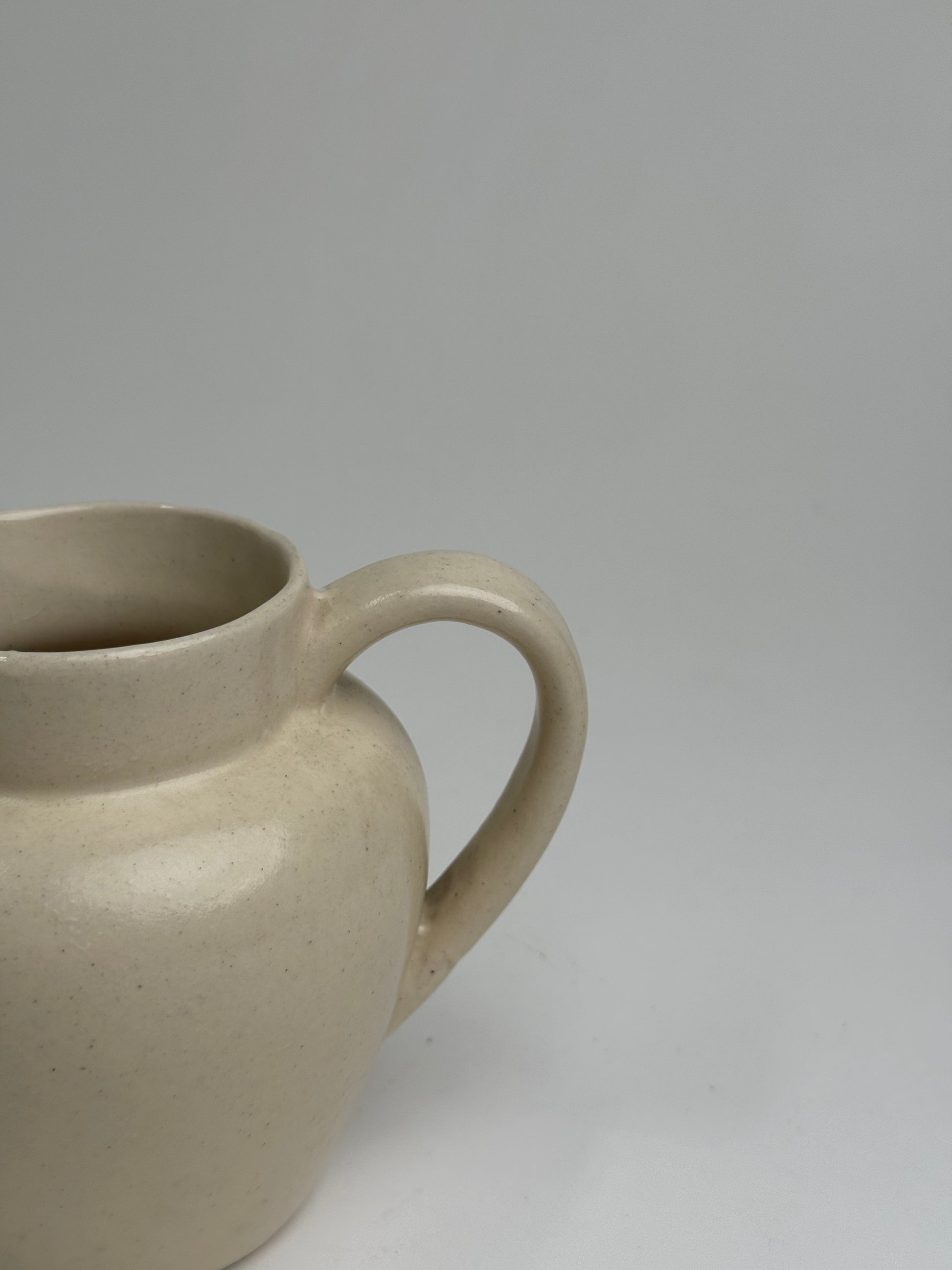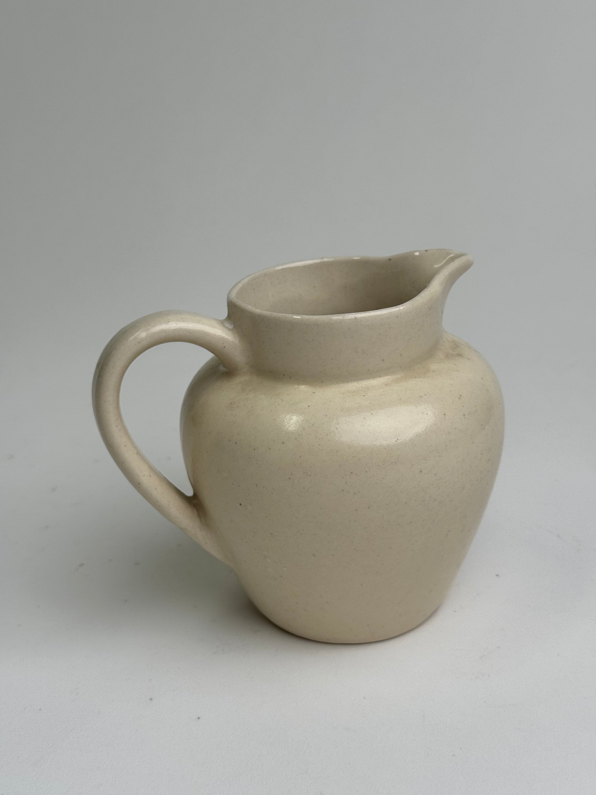 This small vintage jug features a cream glaze and a soft, rounded handle. A simply elegant piece with endless styling potential.