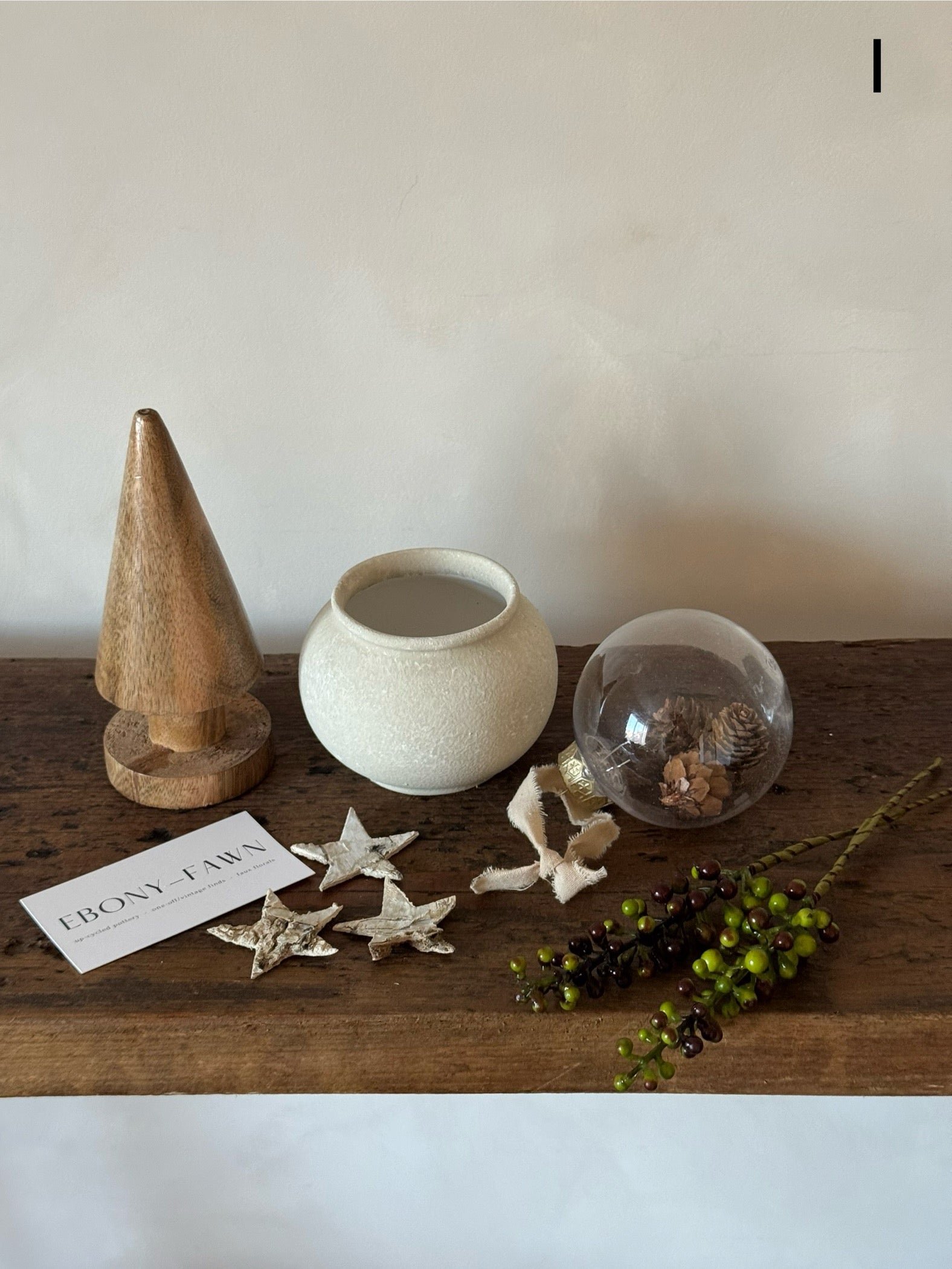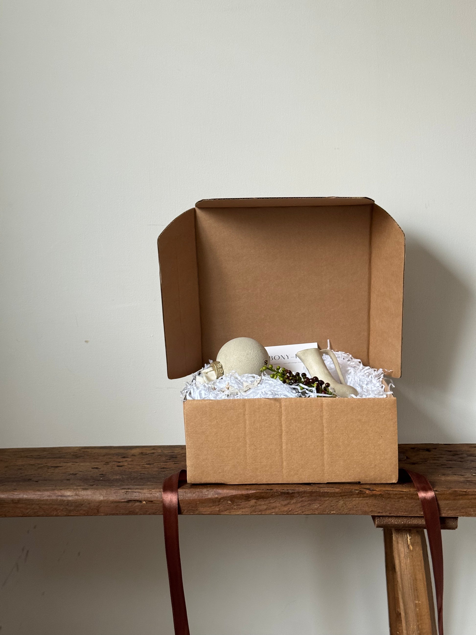 Each Ebony Fawn gift box is carefully curated to offer a moment of calm, texture and timeless charm. Inside you'll find a collection of handcrafted and vintage-inspired pieces, chosen to be styled, kept and cherished long after the season has passed.