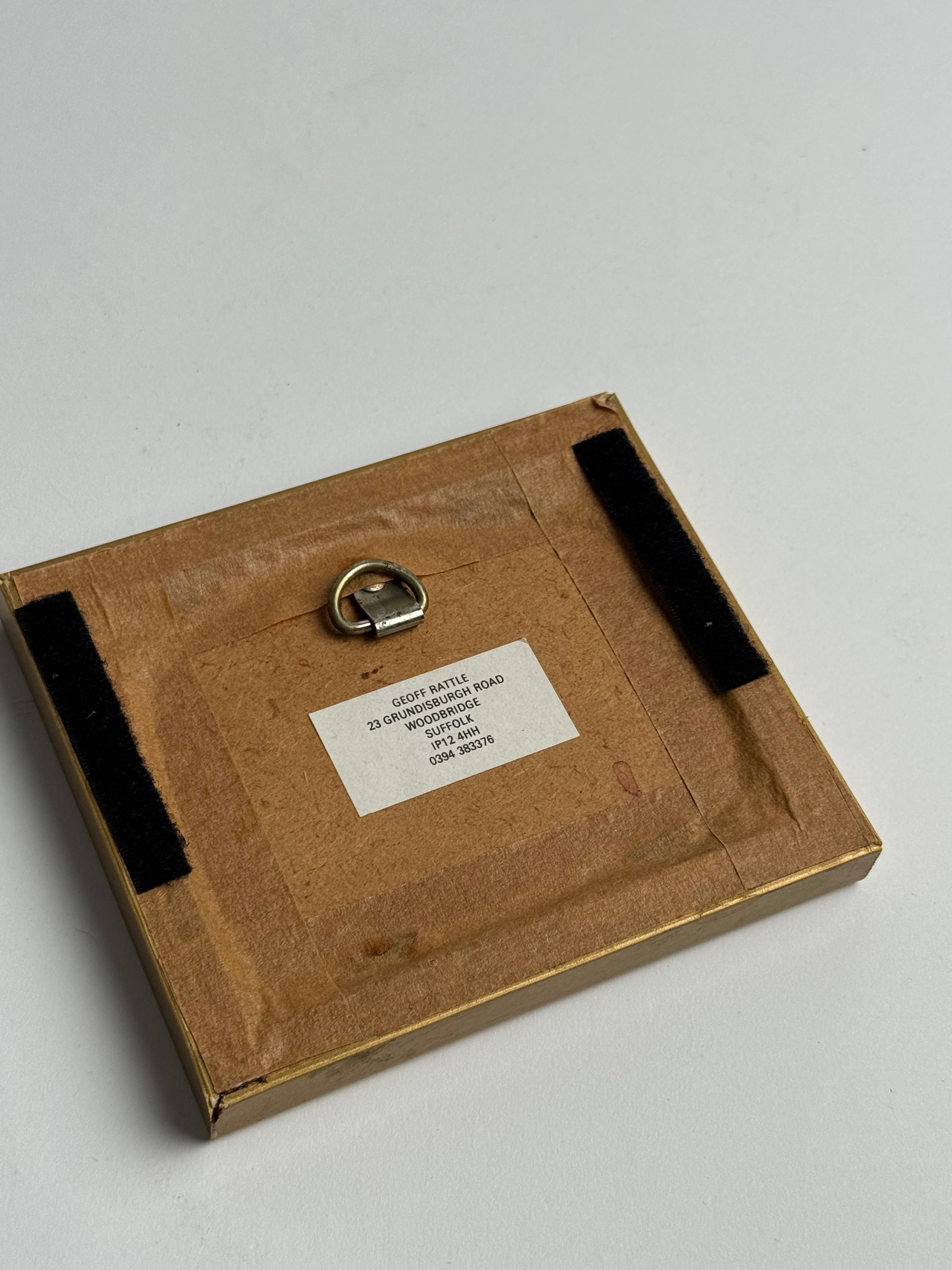Small Vintage framed art with a tasteful green and gold frame & visible signs of patina. A lovely piece for adding character to a room or small nook. Hanging hook on reverse.