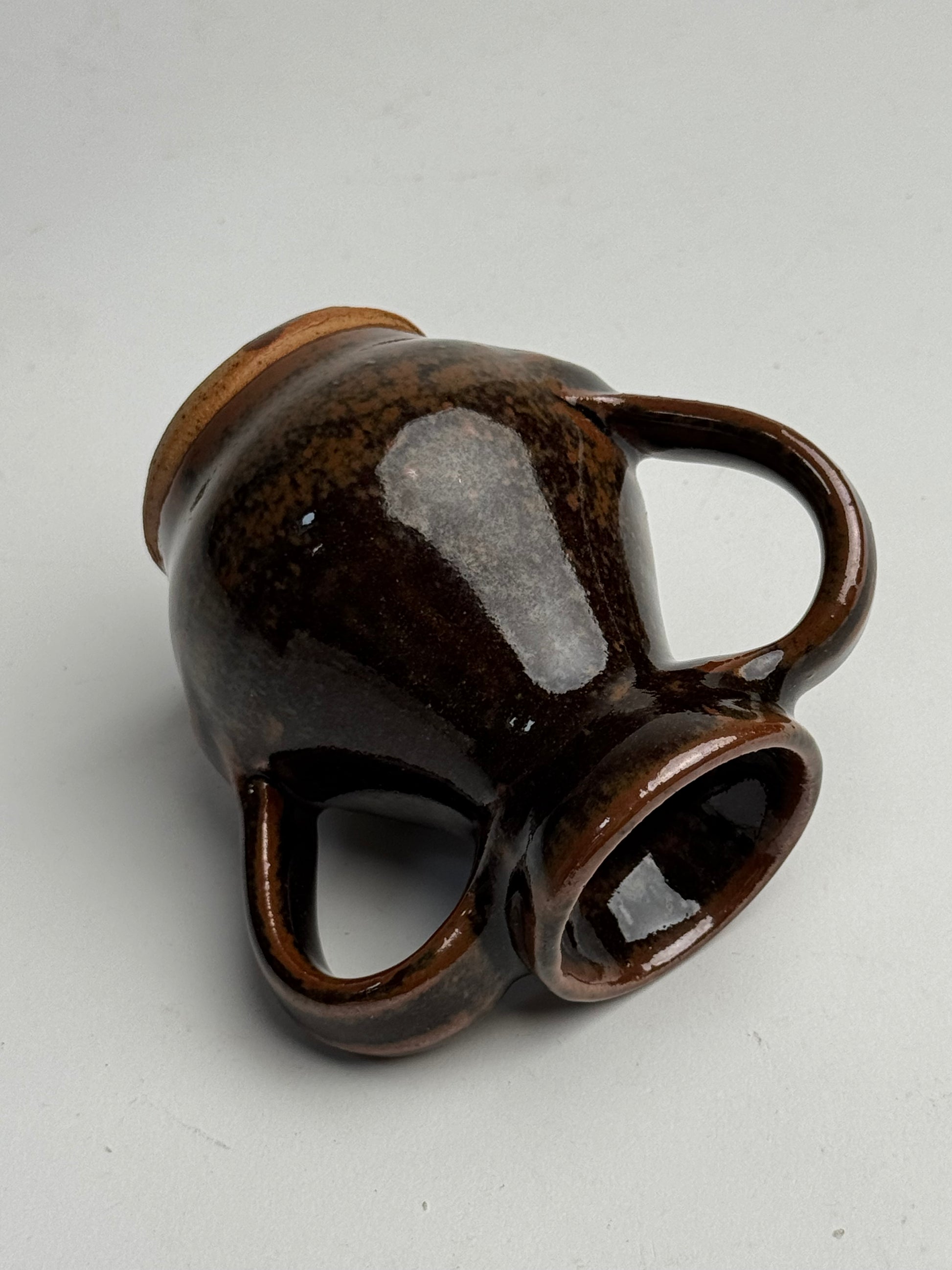 This small twin handled Vintage pot features a rich warm brown glaze with lighter contrasting areas. A lovely smaller piece in immaculate condition, perfectly versatile for styling!