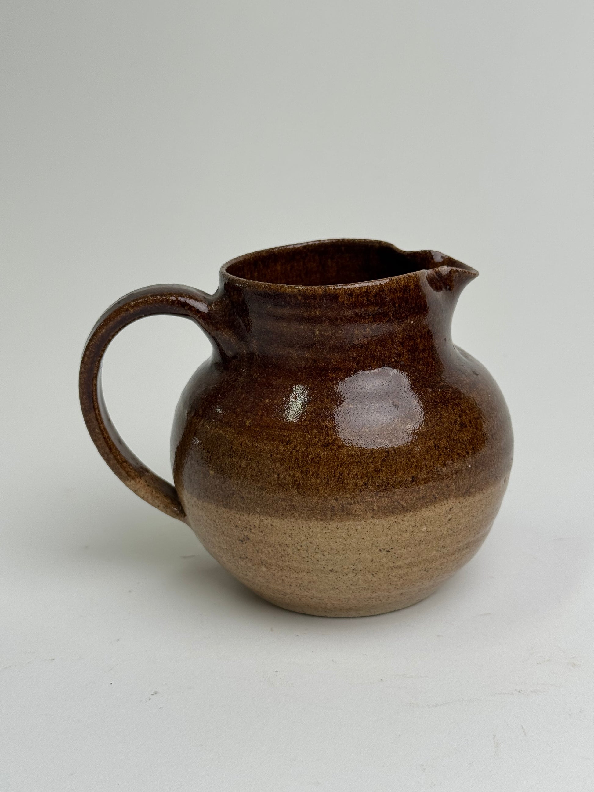 This vintage jug features a two-tone brown glaze with rich, warm undertones. Perfect for shelf/table-top styling.