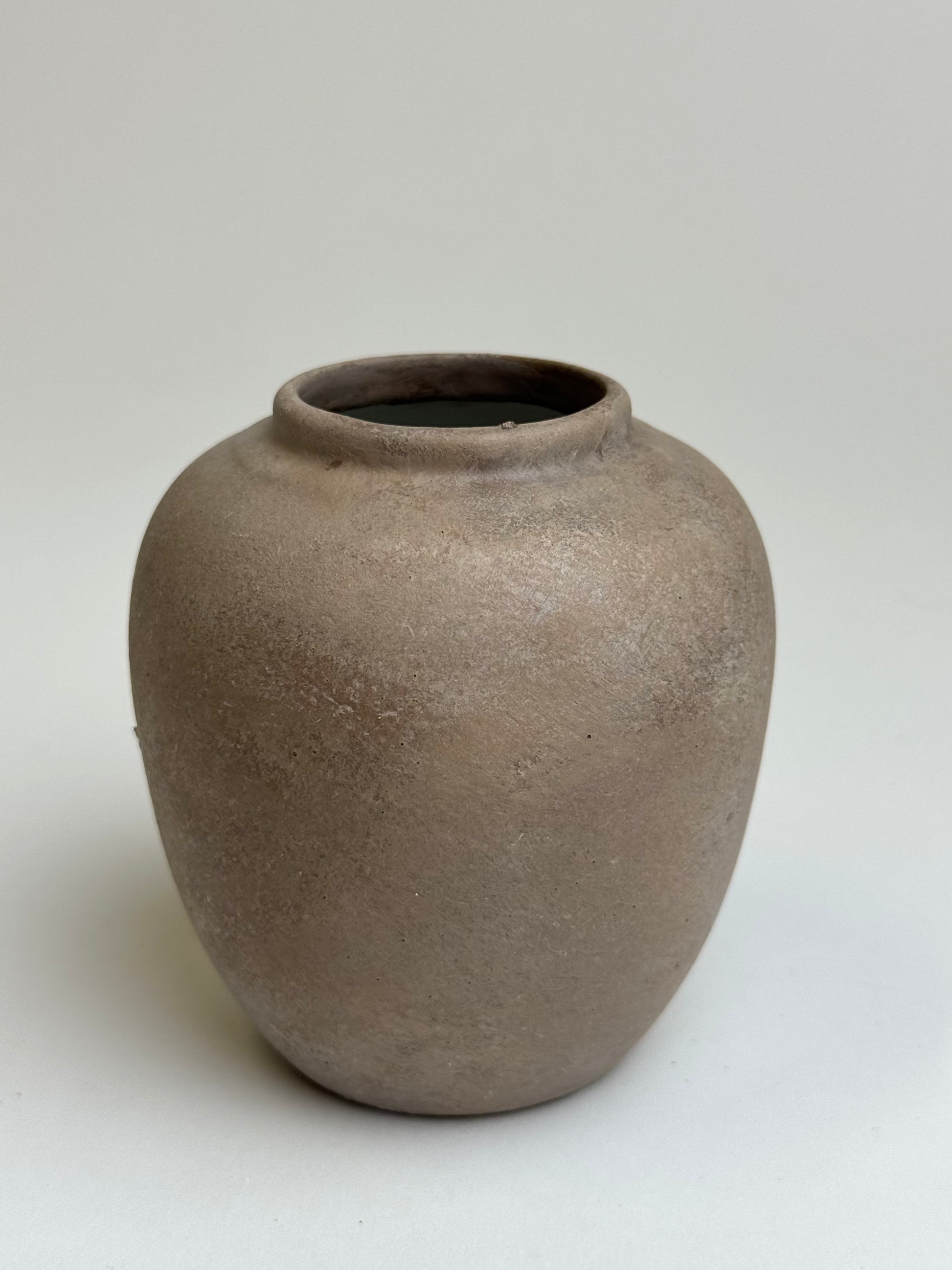 Small rounded pot finished in a soft matte beige, a perfect size for shelf styling or staggering with taller pottery. Waterproof and watertight - suitable for fresh flowers or dried/artificial. Please see care guide below.