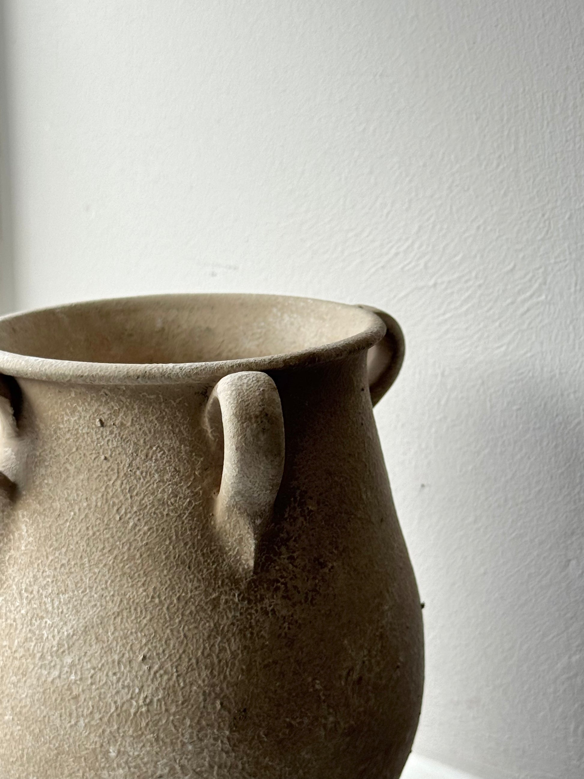 This vintage-feel pot features 4 ears and is hand-finished in a warm-beige stone effect, a piece full of character and charm.