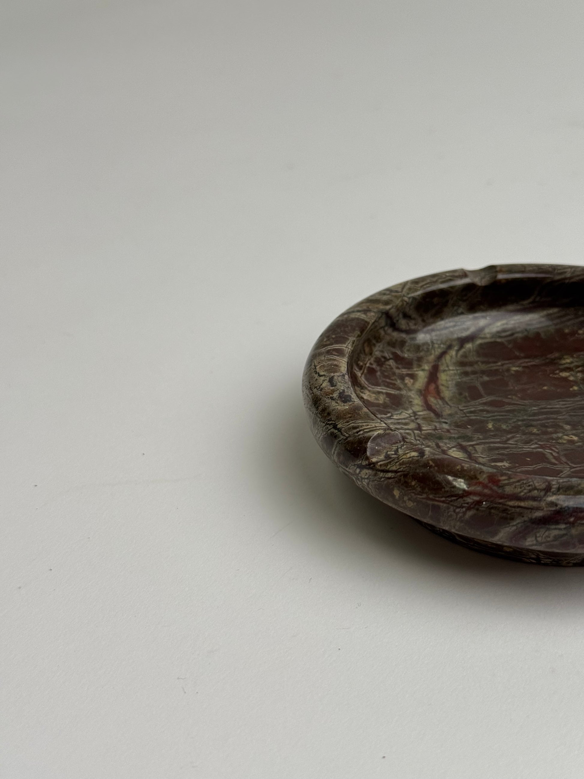 This vintage marble tray, traditionally used as an ashtray, now a beautiful accent for displaying trinkets or keys. Deep brown and beige marbled tones.