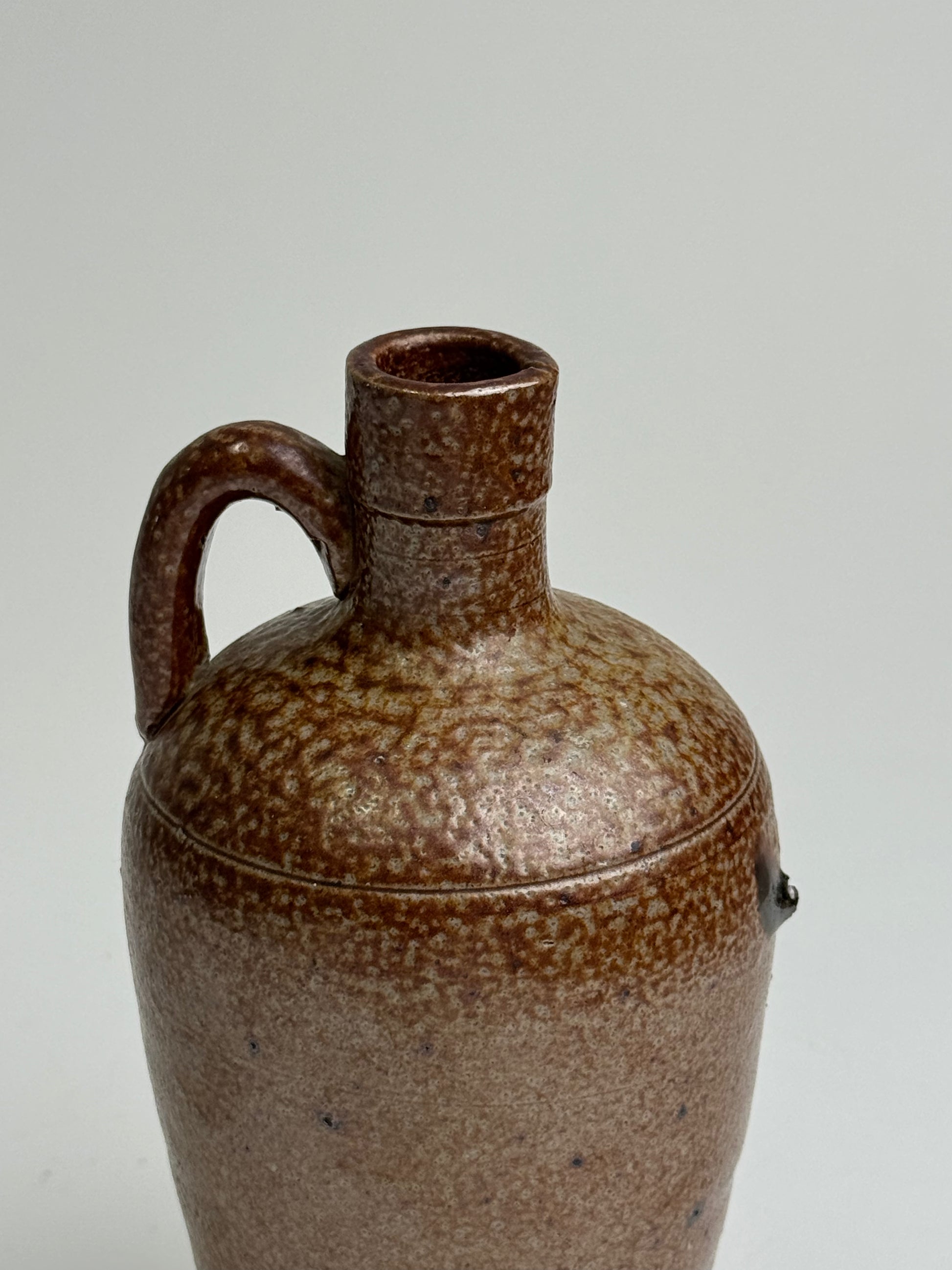 This vintage Portugese stoneware jug features a rustic, speckled glaze and drip detail. A classic handled form, traditionally used for wine or olive oil.