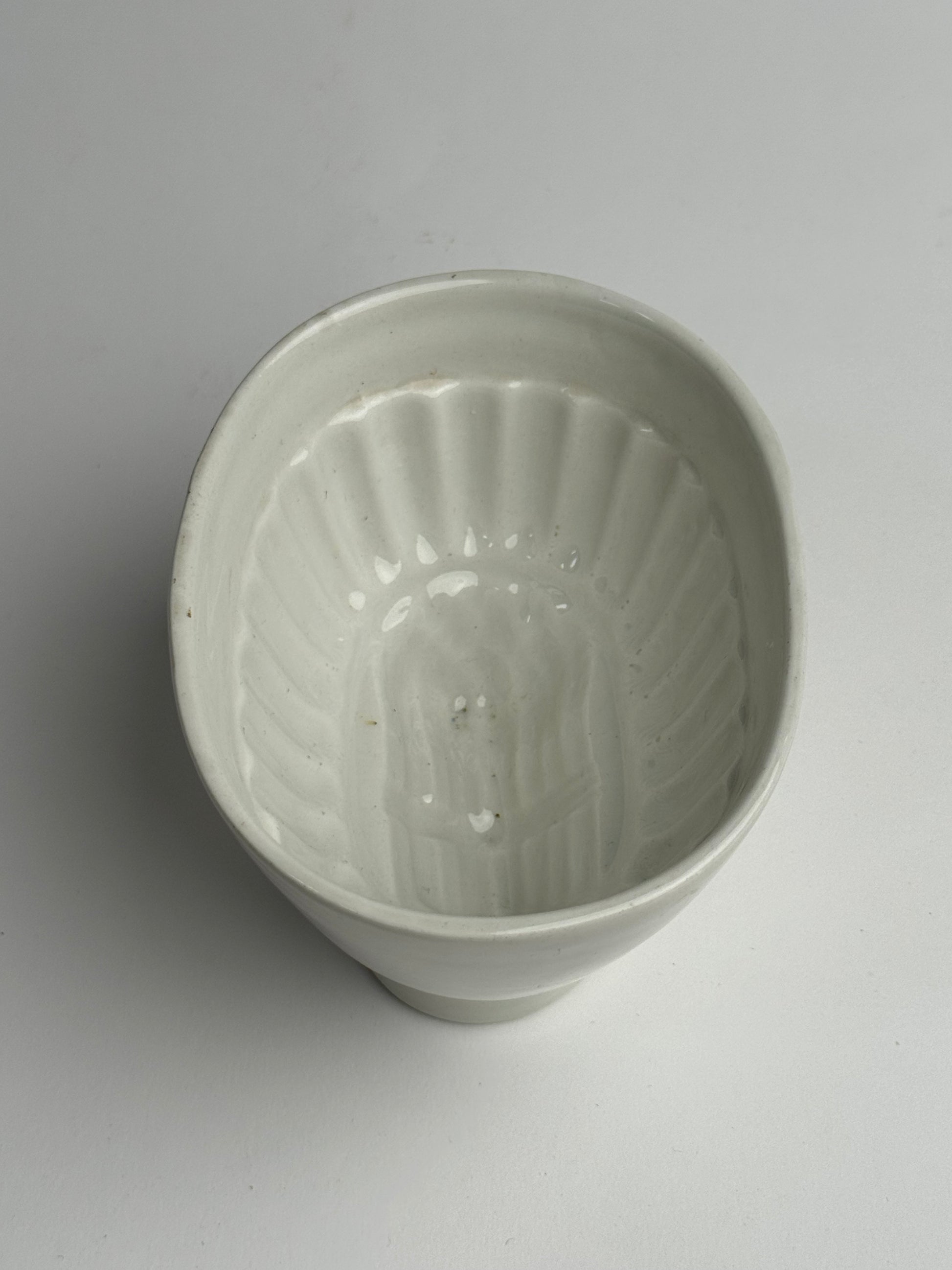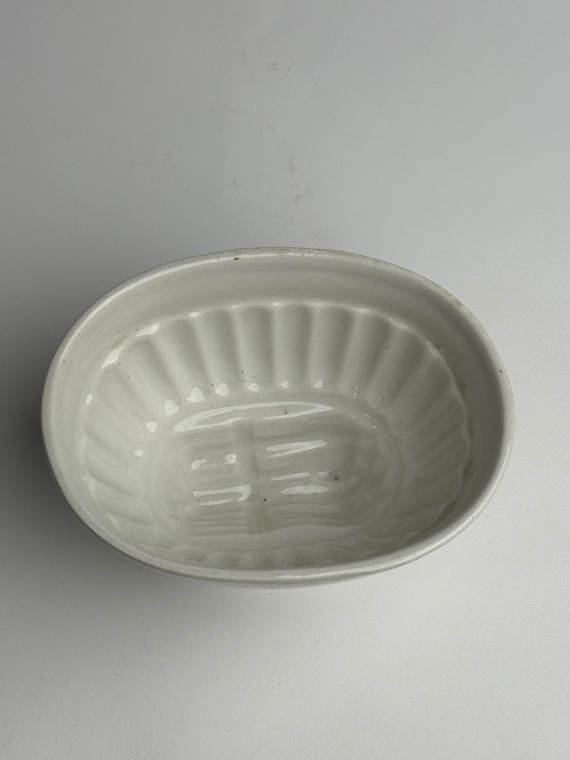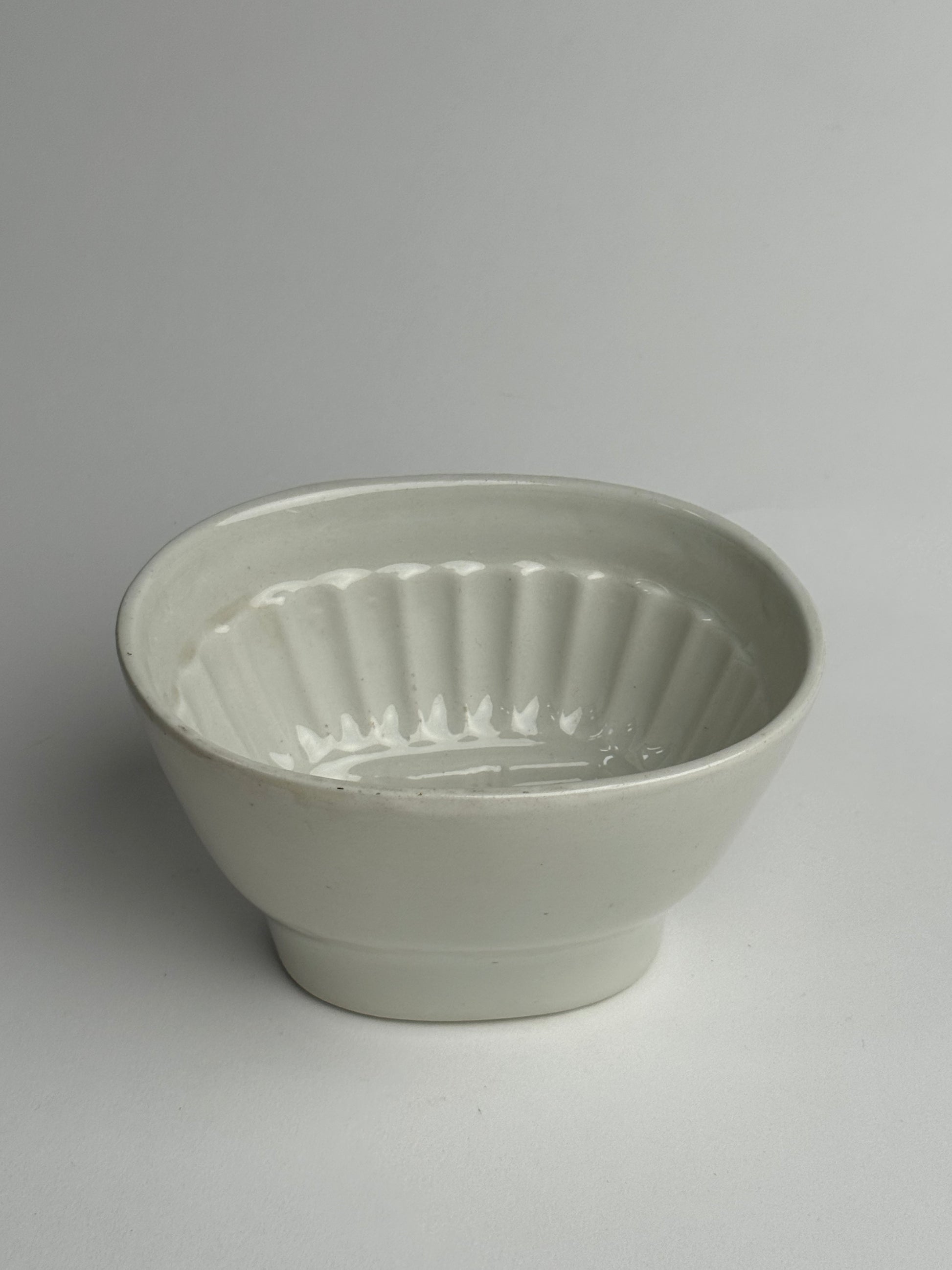 This Vintage white jelly mould features a subtly tapered pedestal design and a ribbed style internal design. A beautiful decorative piece or an elegant alternative to practical storage.