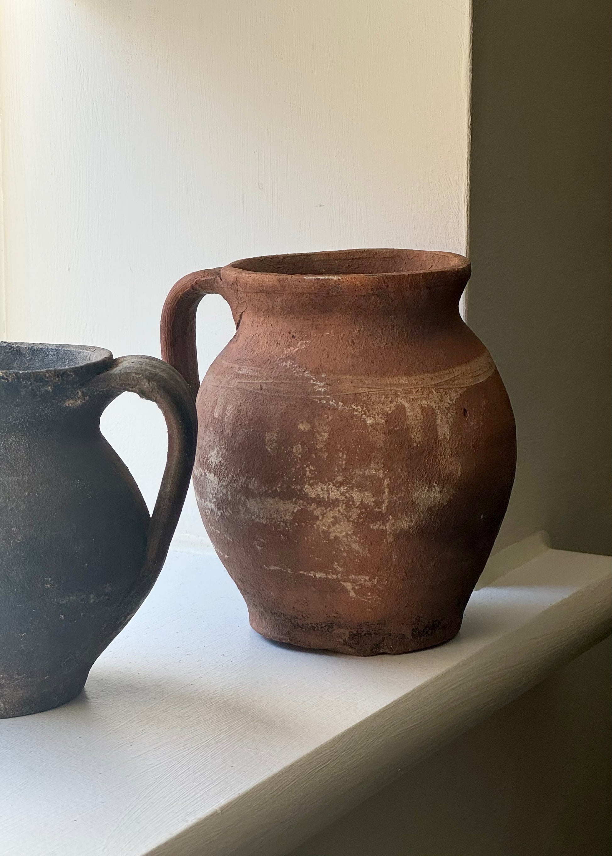 This warm terracotta jug with Mediterranean origin features an earthy matte finish with warm clay undertones. Once used as a working jug, now a beautiful piece for interior styling.